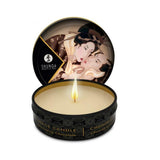Shunga Erotic Art Massage Candle Intoxicating Chocolate 1oz. 100% natural oils. Produces a lukewarm oil at the touch. Leaves skin soft and silky. Burns for hours. Will not clog pores. This soy based candle can be used both as an ambiance candle and intimate massage oil. Directions: Light the candle and let it burn for about 20 minutes. Extinguish the flame and pour a small quantity in the palm of your hand. Apply freely all over the body for a sensual massage.